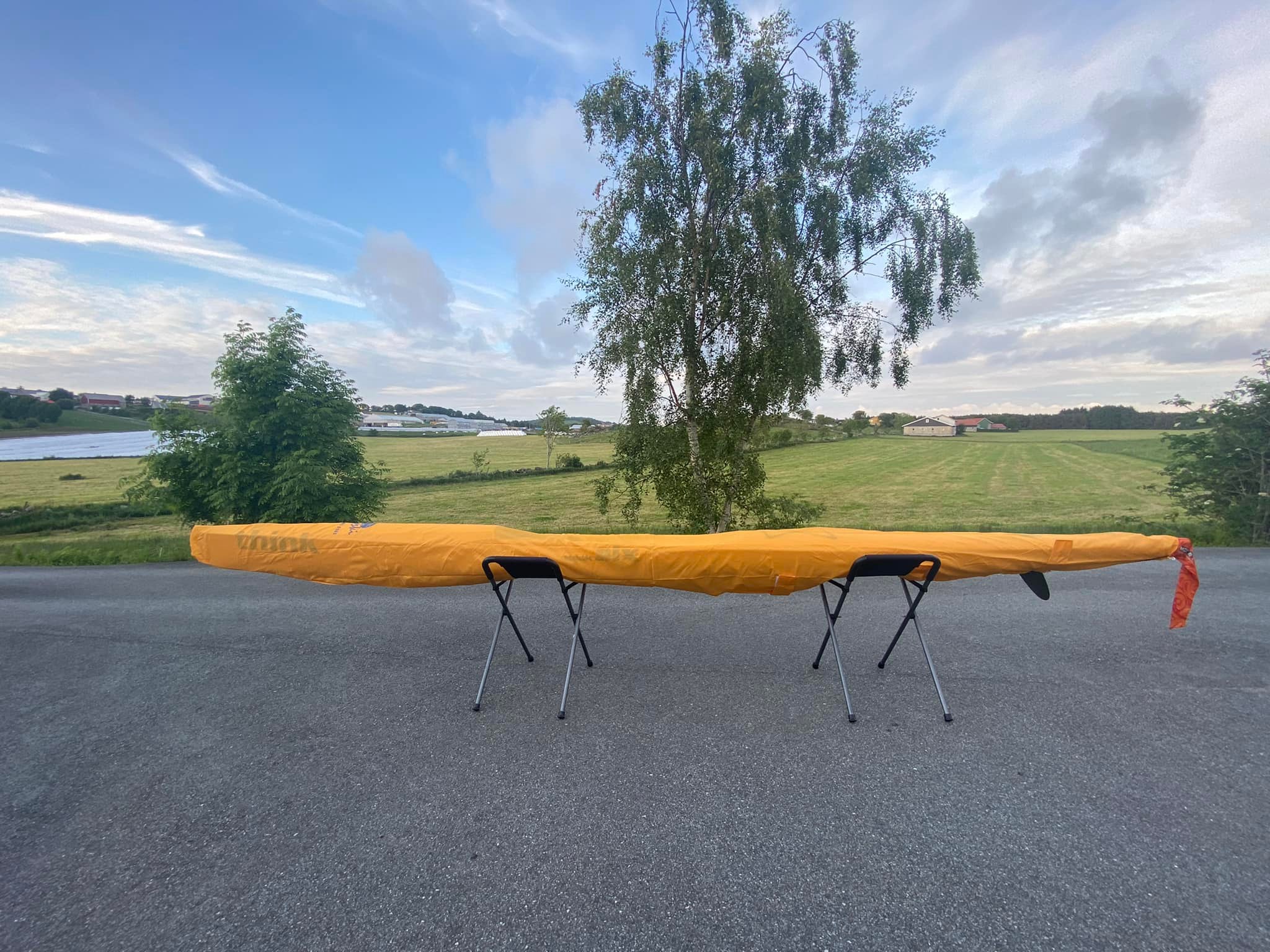 Big shout-out to Surf Ski & Kayak Covers by Ripski for the new cover. Made to fit with a few custom touches. Decided to go with the hi-viz orange – my kids call it the ‘Giant Cheeto’ visible from the moon. Comes complete red rear triangle flag and rolls up into its own compact bag. Velcro from the middle all the way to the tail with a draw-string – easy on/off. Also has velcro cross straps to secure. Usually waterproof but I chose to add some vents on mine. Thank you very much Fleur De Waal! I will be ordering another for the Fenn double soon – let me know if anyone is interested in adding to the order.